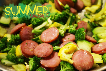 While cooking, peel and slice summer squash and add squash and broccoli in with onions when almost done. Add spices to taste and additional butter if needed to prevent sticking. Cook for an additional 5 minutes or until vegetables are soft. Enjoy!